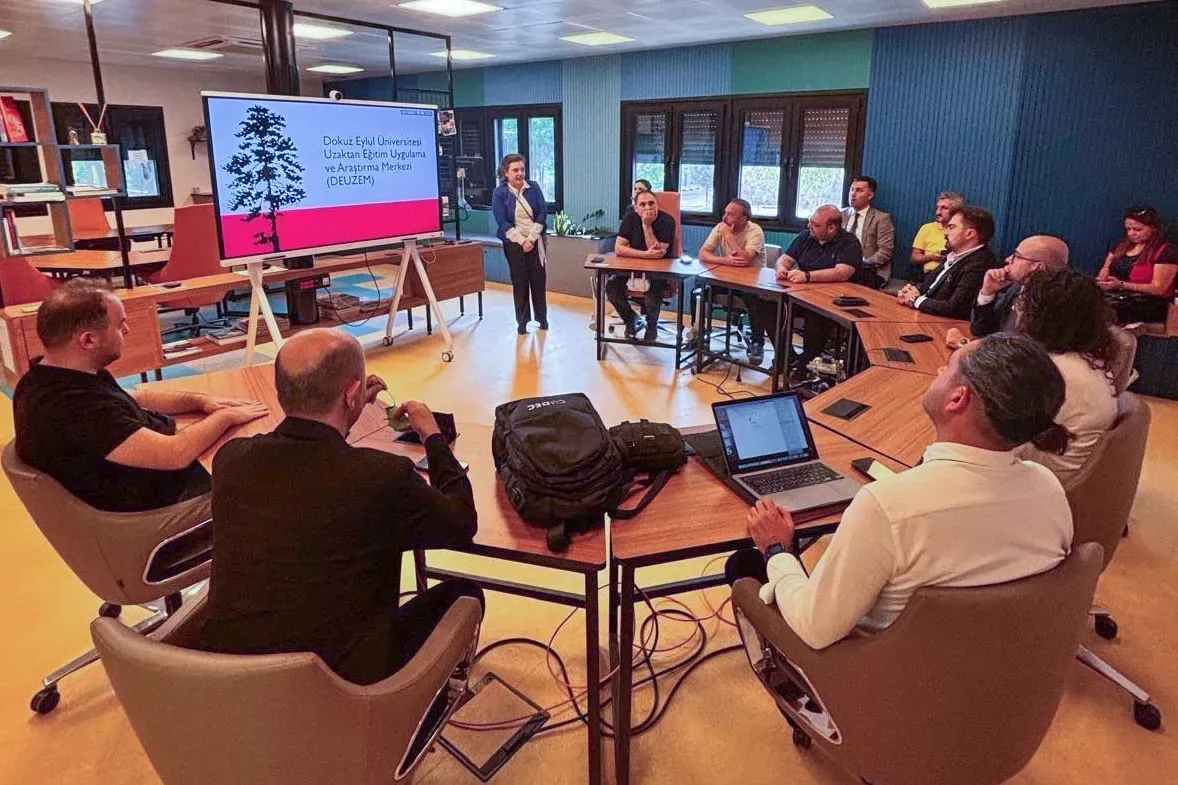 İZMİR (İGFA) - Trabzon Üniversitesi'nin koordinatörlüğünü yürüttüğü, Dokuz Eylül Üniversitesi (DEÜ), Atatürk Üniversitesi, Gazi Üniversitesi ve Karadeniz Teknik Üniversitesinin konsorsiyum ortağı olarak yer aldığı 20231-TR01-KA131-HED-000136980 numaralı Erasmus+ Değişim Programı Uzaktan Eğitim Merkezleri Konsorsiyumu (CODEC) hareketliliği kapsamında düzenlenen "CODEC Konsorsiyumu 3. Süreç Değerlendirme Toplantısı", 2-3 Ekim 2025 tarihlerinde DEÜ Uzaktan Eğitim Uygulama ve Araştırma Merkezi (DEUZEM) ev sahipliğinde gerçekleştirildi.