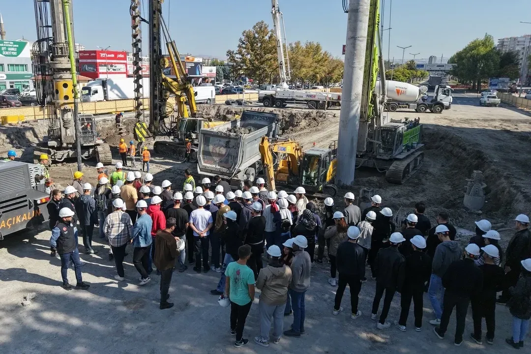 KAYSERİ (İGFA) - Genç ve öğrenci dostu şehir Kayseri'nin belediyesi Büyükşehir, öğrencilere yönelik katkı ve desteklerini her kulvarda sürdürmeye devam ediyor. Bu kapsamda yol, katlı kavşağı ve kentsel dönüşüm inşa çalışmaları kapsamındaki DSİ Ana Tamir Katlı Kavşağı ile Sahabiye Kentsel Dönüşüm projesindeki temel çalışmalarında üniversite öğrencilerini ağırlayan Büyükşehir, teorik derslerdeki bilgileri uygulamalı olarak da öğrencilere sunma fırsatı tanıdı.