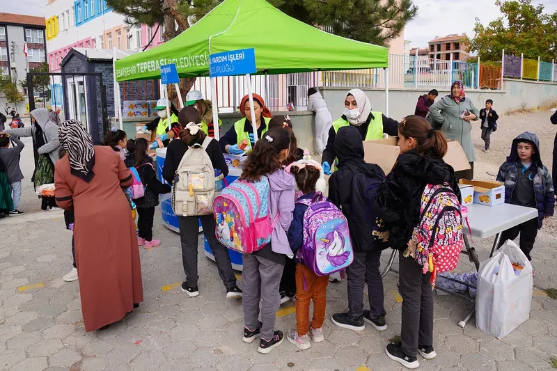 Belediye yetkilileri, beslenme desteğinin Tepebaşı bölgesinde her gün farklı bir okulda öğrencilere ulaştırılarak tüm bölgeye hizmet verileceğini açıkladı.