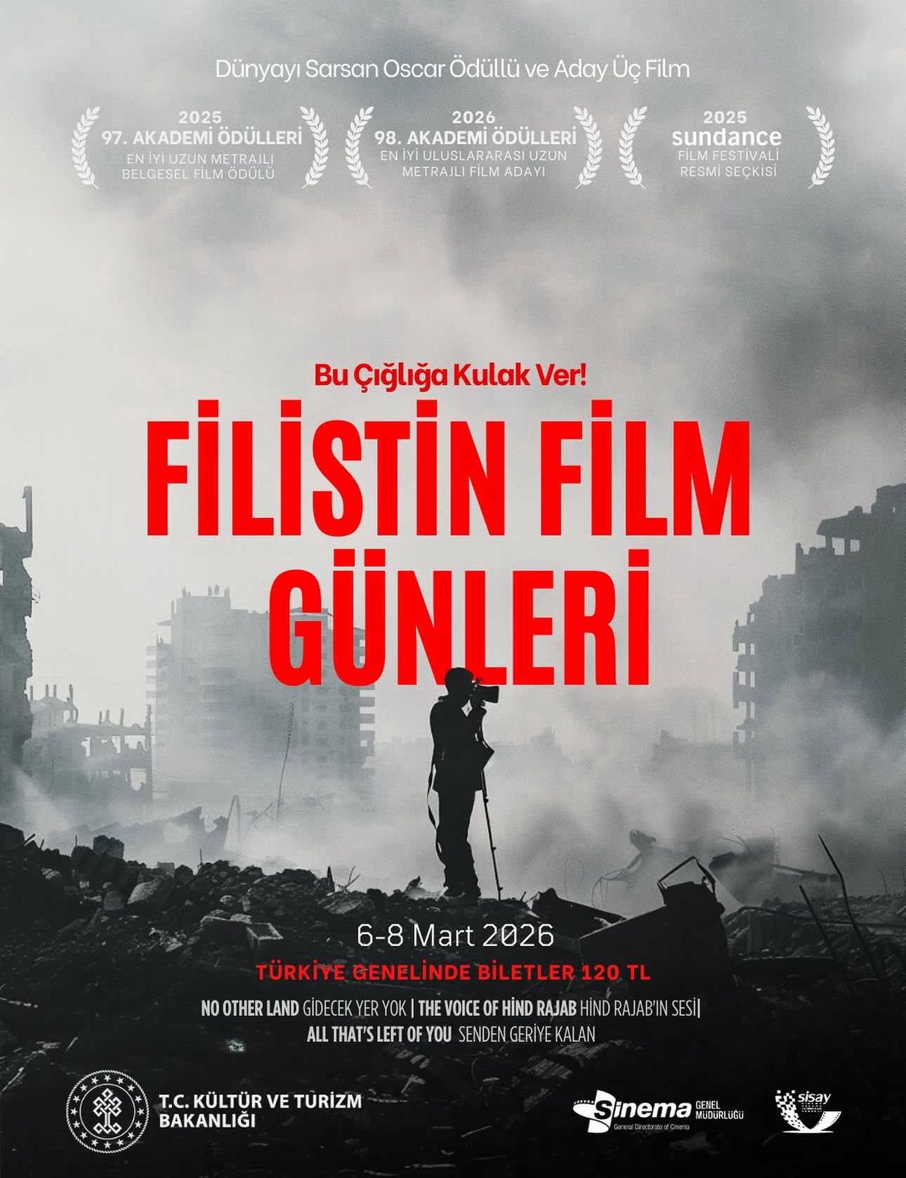 Kültür ve Turizm Bakanlığı Sinema Genel Müdürlüğü, Filistin Film Günleri kapsamında 6- 8 Mart tarihlerinde önemli bir projeye imza atıyor.