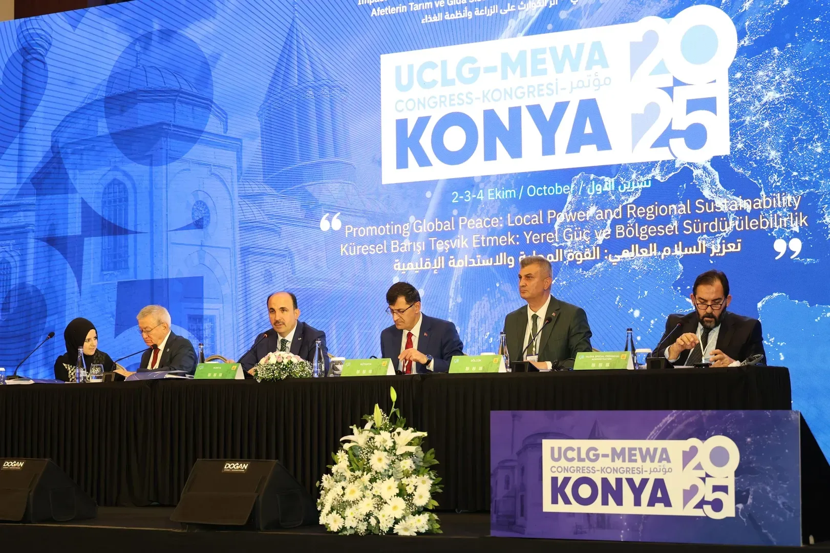 Konya Büyükşehir Belediyesi'nin ev sahipliğinde düzenlenen UCLG-MEWA Kongresi'nde birlik başkanlığına İsrail tarafından tutuklanan Filistin'in El-Halil Belediye Başkanı Tayseer Abu Sneineh, oy birliğiyle yeniden seçildi.