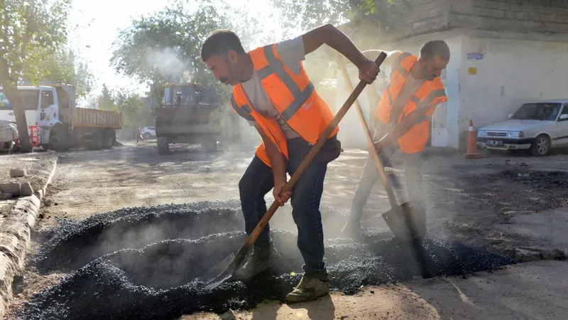 KASKİ, Dulkadiroğlu Mehmet Akif Mahallesi'nde altyapı imalatlarında bozulan yol yüzeylerini sıcak asfaltla kaplıyor.