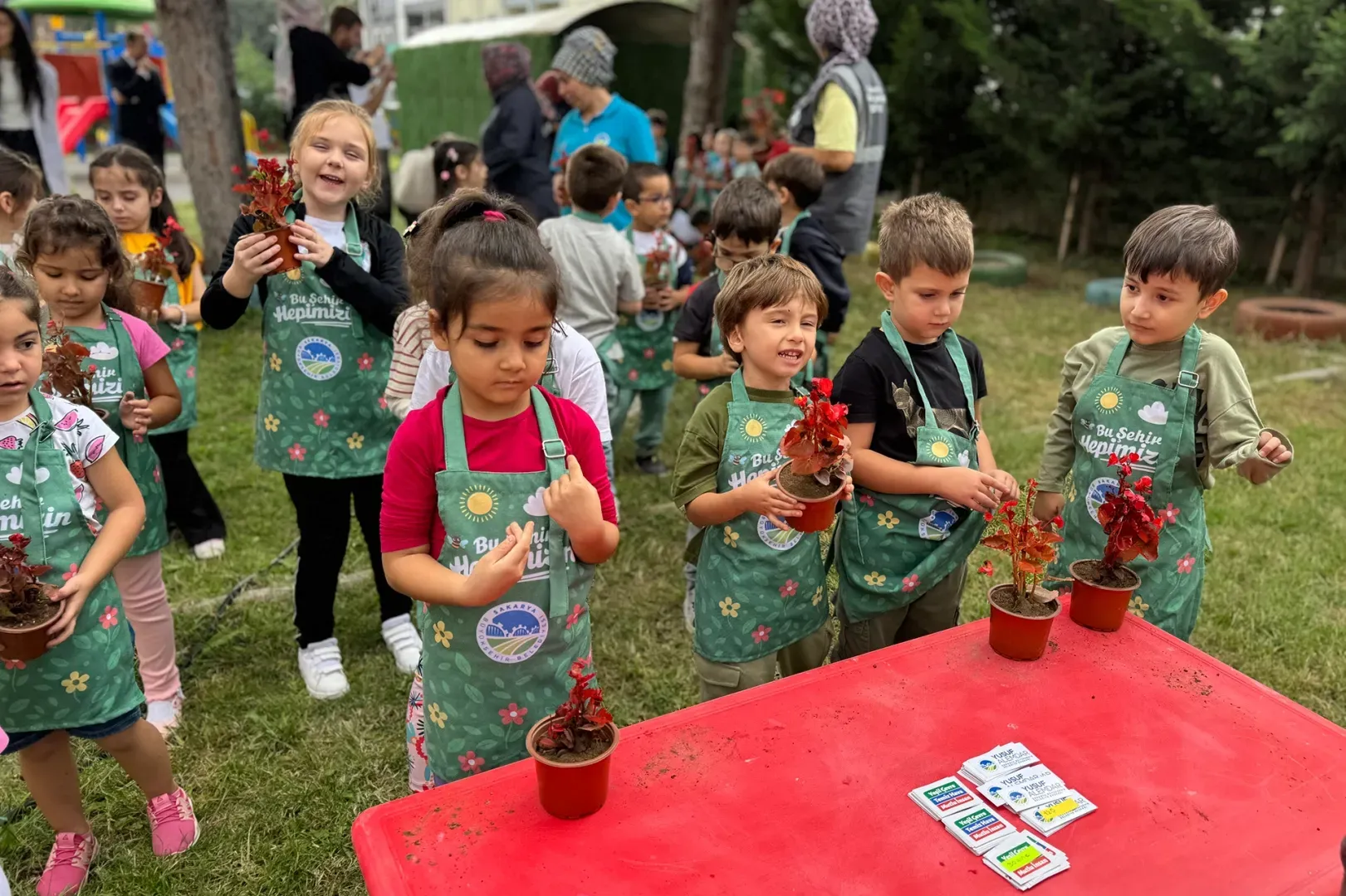 Park ve Bahçeler Dairesi Başkanlığı ile Halkla İlişkiler Şube Müdürlüğü'nün ortak çalışmasıyla düzenlenen etkinlikte, 300'ü aşkın anaokulu öğrencisi bahçıvan önlüklerini giydi. Minikler, saksılara mevsimlik çiçekler ekerek bitki yetiştirmeyi öğrendi ve doğaya katkı sağlamanın sevincini yaşadı.