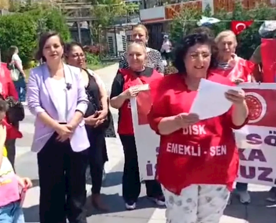UBA/İZMİR  - Disk Emekli Sen Karabağlar Şube Başkanı Şengül Yanar Basın açıklamasında önemli konulara değindi. Basın açıklamasında İzmir Karabağlar Belediye Başkanı Helil Kınay'da  Disk Emekli Sen Karabağlar Şube Başkanı Şengül Yanar'a ve kadınlara destek verdi.